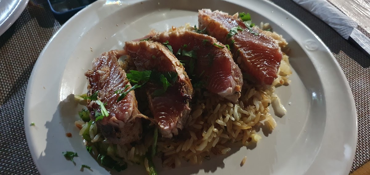 We are so lucky to find a nice restaurant with excellent fish dishes. They have no printed menu but they wrote the fresh fish dishes on the display blackboard. The chef( probably the owner) who is a Portuguese explained the menu to us in details. We asked him to recommend the fish that we should order and surprisingly, he made us a platter with three kind of fresh and delicious fish. They are Tuna, Bonita and Serra. All three kinds of fish taste so well. The side dishes of salad of fried rice are also exceptional. The chef and the staff are very nice. Overall a very satisfied dining experience.